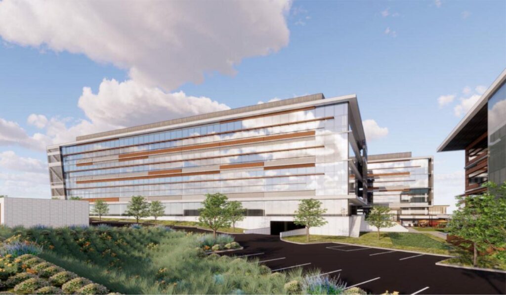 The Neurocrine Biosciences Campus includes four buildings and a new CUP, featuring labs, offices, and a vivarium. Morrow Meadows handled all TIs, core & shell, and complex lab systems.