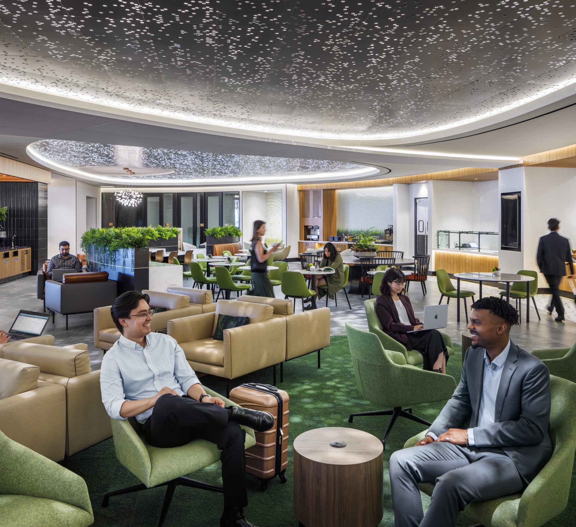 The Club at SFO is a 12,000 sf lounge in the San Francisco International Airport, making it the largest lounge at SFO. Located in the new Harvey Milk Terminal 1, the new lounge consists of intricate lighting and Crestron controls, light therapy rooms, and indoor electric firepit, a full bar and kitchen, family rooms, work out rooms, private work spaces and community areas.